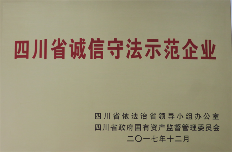 近期,省依法治省办、省国资委下发《关于命名表扬“诚信守法示范企业”创建合格单位的通知》(川国资委〔2018〕30号),DB视讯 集团荣获省级“诚信守法示范企业”荣誉称号。
