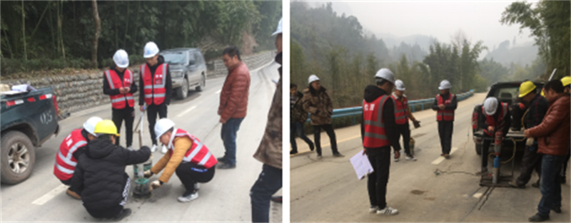 1月25日,宝兴县公路养护段组织第三方试验检测组织对路桥公司承建的“罗家村一、四、七组通组公路改(扩)建工程(K0+000~K0+800段)路面铺筑及沿线边沟、 交安工程”进行交工验收外业检测。宝兴县发改局、纪检组以及参建监理、设计、施工单位代表一同前往该项目现场进行交工验收。