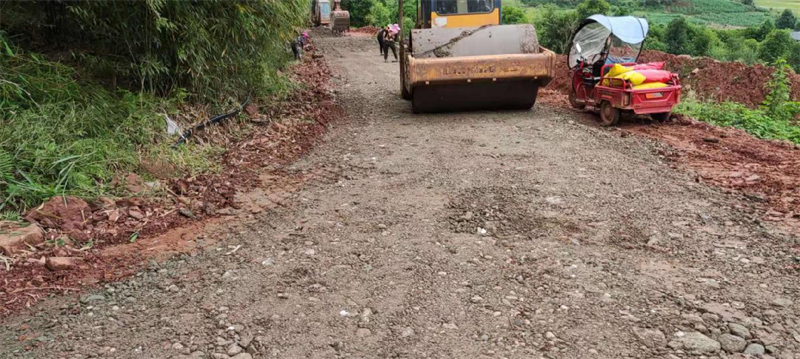 在路桥公司承接的“世界银行贷款芦山地震灾后恢复重建天全县始阳至新华农村公路”项目天全县新华乡柏树村至永安村段,其村道路面结构层差,路基窄,雨水多,晴通雨阻,对本地农产品外运造成很大困扰,严重影响了民众的生产生活。为持续响应市委市政府加快雅安市“四好农村路”的部署安排,解决当地村民出行难、本土农产品外销滞后等问题,路桥公司天全项目部主动作为,在推进项目部主体建设的同时,坚持以问题为导向,采用“始新路”施工现场自拌水稳料,为村民铺设了一段长临时水稳路面,方便广大村民顺利出行,促进当地农产品物资研讨。