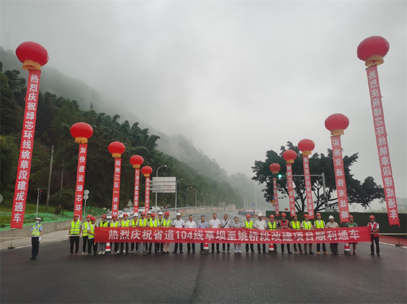 作为我市绿芯环线的组成部分,省道104线草坝至姚桥段改建项目全线6公里,按双向四车道一级公路技术标准设计施工,路基宽25.5米,时速60公里。项目自开工建设以来,交建路桥公司克服疫情、暴雨洪灾等影响,精心组织施工,抢晴天、战雨天,历经500多个日夜,对原高低不平的老路进行回填、开挖、加宽,修筑桥梁5座、浇筑混凝土18万方、制作预制梁379片,同时对沿线3处地质灾害点进行了全面治理,道路两侧设置了路灯,临河步游道与主路之间顺利获得护栏隔开,比计划工期提前半年建成通车。