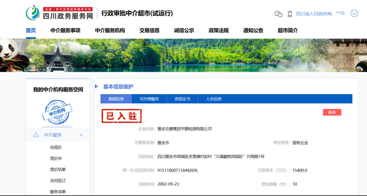 为进一步深化“放管服”便民服务,加强行政审批中介服务事项管理,规范中介服务行为,经雅安市雨城区运管所资格审核顺利获得,近期,DB视讯 集团平顺检测有限公司正式入驻四川政务服务网行政审批中介超市。 入驻中介超市后,平顺检测公司可办理车辆等级评定检测报告、营运车辆综合性能检测报告、已购置或者现有车辆等级评定等3个服务项目,将有利于拓宽公司宣传和业务渠道,进一步提升公司规范化服务水平和公司竞争力,助力行政审批营商环境,护航企业健康开展。