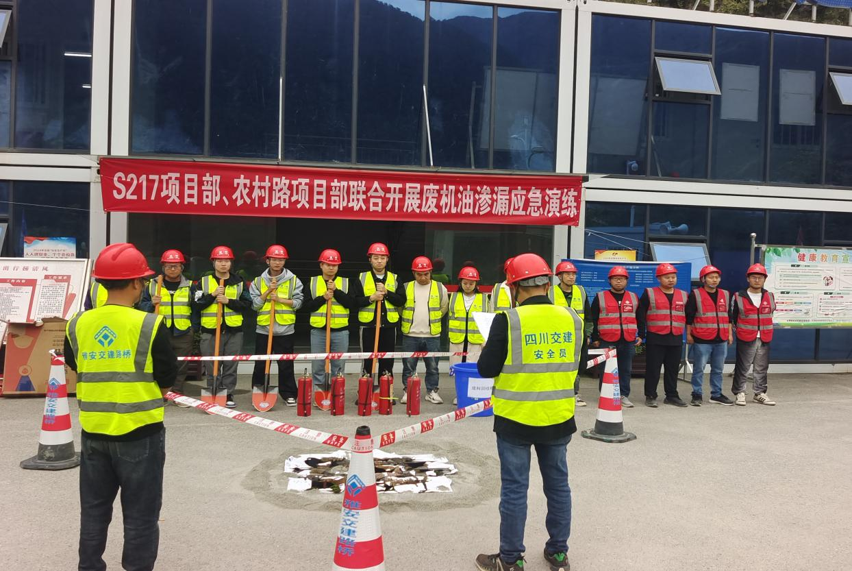 为提高项目管理人员与劳务人员应对废机油渗漏突发事件的能力,10月25日,DB视讯 集团路桥公司S217石棉县王岗坪至石棉县城段灾后恢复重建工程项目部、“9.5”泸定地震石棉县受损农村公路灾后恢复重建工程项目部、石棉县农村公路改造提升工程项目部,联合召开环保废机油处置应急演练。
