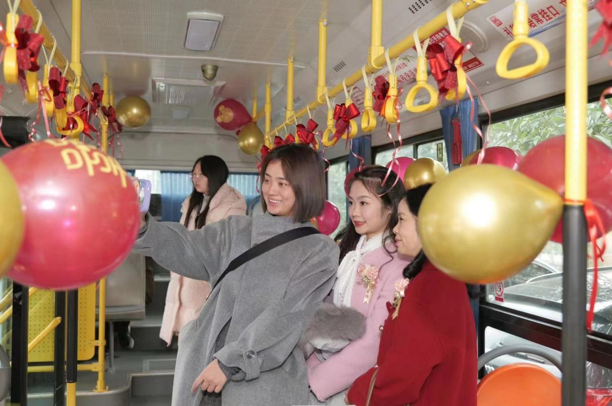 使用这辆“公交婚车”的新人表示:“与传统迎亲的车队相比,公交婚车不仅低碳环保,好看热闹,而且租金也相对较低,性价比直接拉满,亲朋好友都聚集在宽敞的公交车里,一路拍照、唱歌,特别有仪式感”。