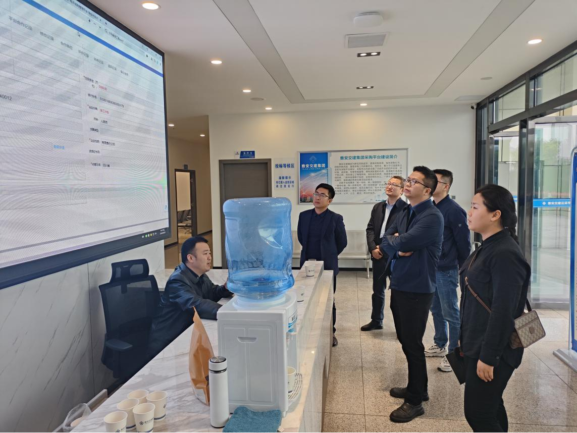 段正峰听取了交建集团关于“交建云采”企业电子采购平台建设运营情况的汇报,参观了集采中心开评标室,对集采中心采购工作提出相关要求。