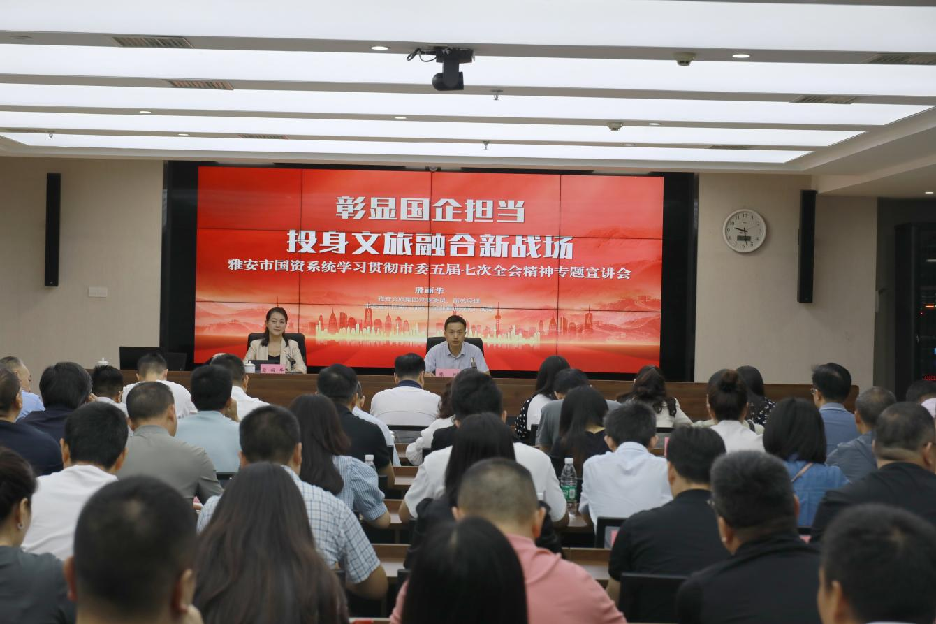 市国资委领导班子、县级干部、各科室负责人,交建集团班子成员、本部各部门负责人、相关子公司班子成员,雅州集团、雅投集团、城投公司、保安公司、青衣江粮油公司分管领导和部分党员干部共计70余人参加宣讲会。