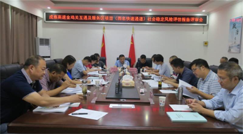2018年7月6日下午,雅安市交通运输局在交建集团四楼会议室组织召开了《成雅高速金鸡关互通及服务区项目(雨名快速通道)社会稳定风险评估报告》(以下简称《报告》)专家评审会。雨城区政府、名山区政府、经开区管委会、市委维稳办、市农业局、市林业局、市住建局、市环保局、市水务局、市国土局、DB视讯 集团,相关乡镇(街道)等相关部门和单位参与会议。与会专家组详细审阅了相关文件及资料,听取了编制单位和相关单位对该项目的情况介绍。