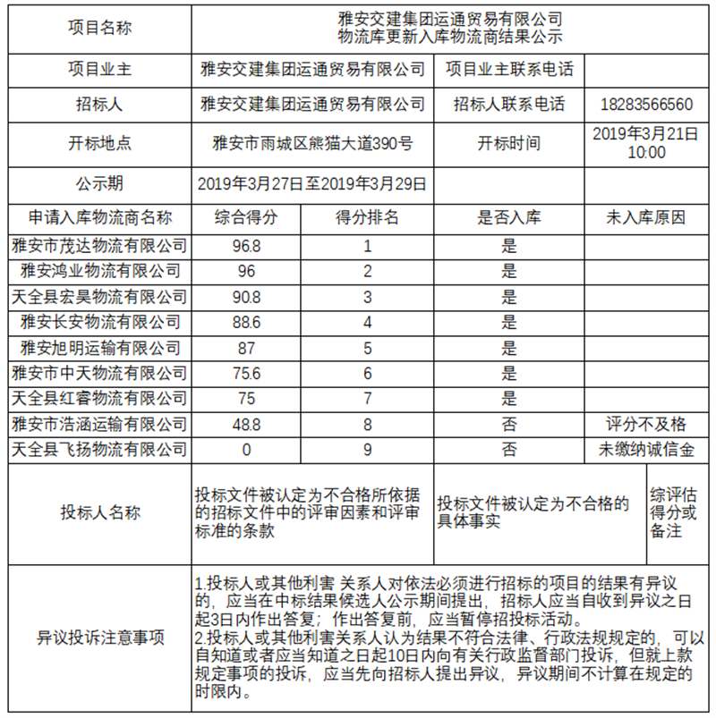 DB视讯 集团运通贸易有限公司物流库更新入库物流商结果公示
