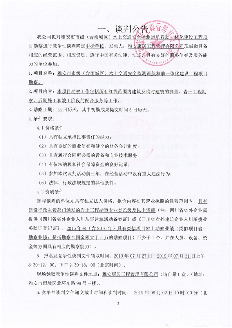 雅安市市级(含雨城区)水上交通安全监测巡航救助一体化建设工程项目勘察