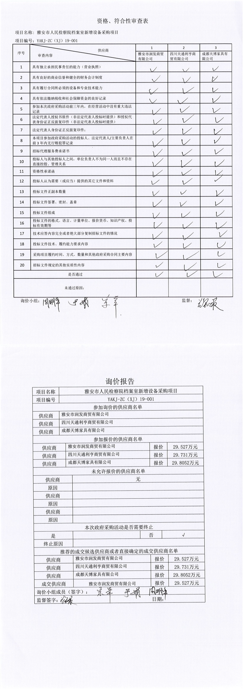 雅安市人民检察院档案室新增设备采购项目结果公示
