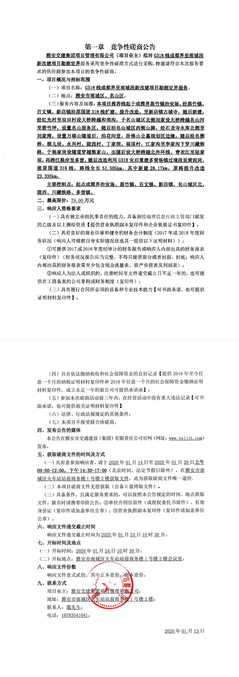 DB视讯 集团项目管理有限公司G318线成都界至雨城段新改建项目勘测定界服务竞争性磋商公告