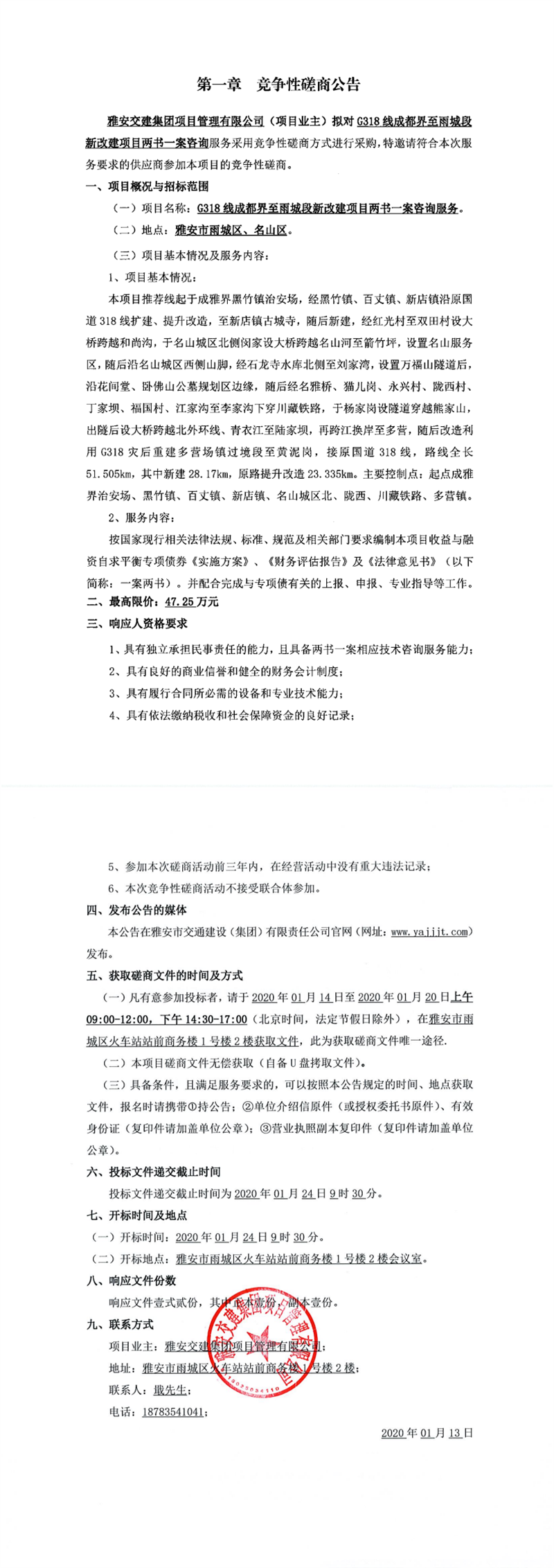 DB视讯 集团项目管理有限公司G318线成都界至雨城段新改建项目勘测定界服务竞争性磋商公告