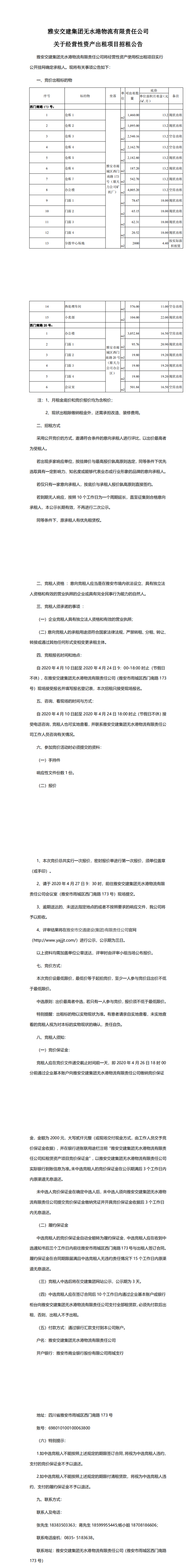 DB视讯 集团无水港物流有限责任公司关于经营性资产出租项目招租公告