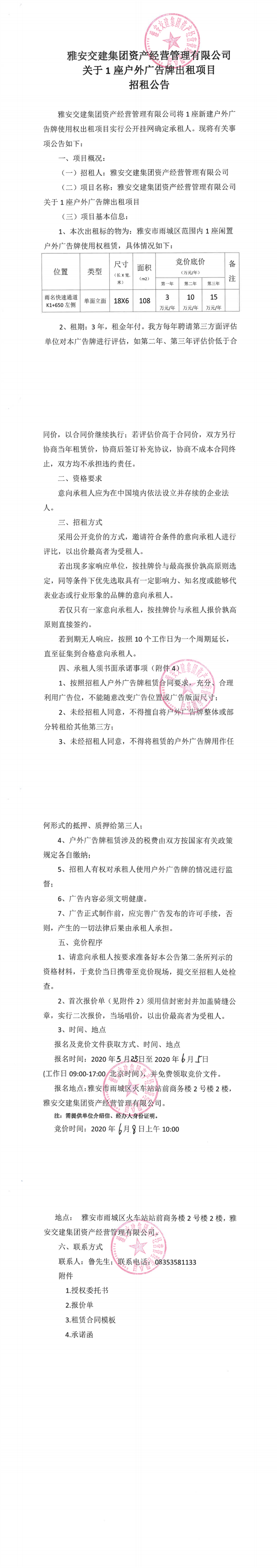 DB视讯 集团资产经营管理有限公司关于1座户外广告牌出租项目招租公告