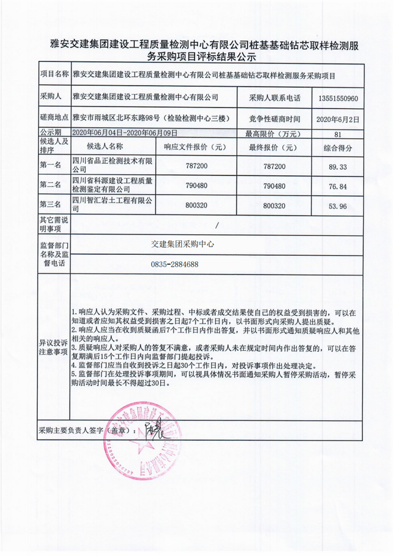 DB视讯 集团建设工程质量检测中心有限公司桩基基础钻芯取样检测服务采购项目评标结果公示