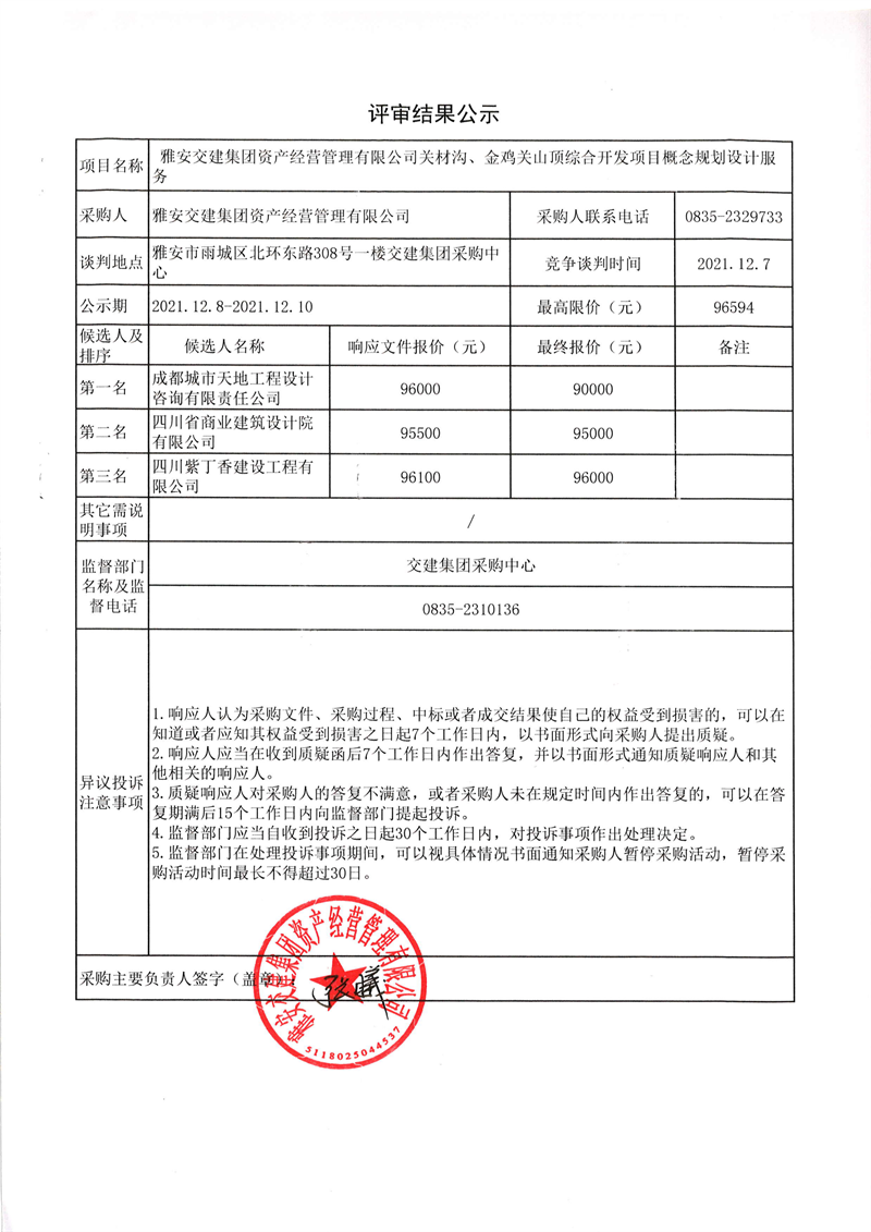 DB视讯 集团资产经营管理有限公司关材沟、金鸡关山顶综合开发项目概念规划设计服务评审结果公示