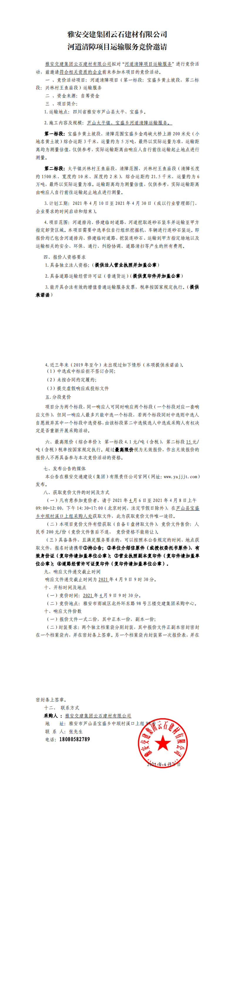 DB视讯 集团云石建材有限公司河道清障项目运输服务竞价公告