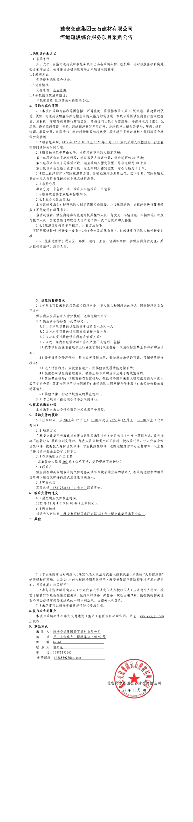 DB视讯 集团云石建材有限公司河道疏浚综合服务项目采购公告