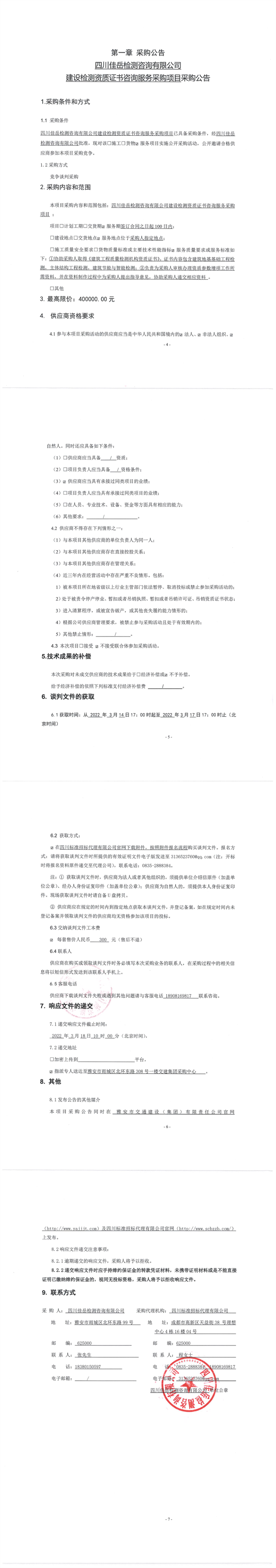 四川佳岳检测咨询有限公司建设检测资质证书咨询服务采购项目采购公告