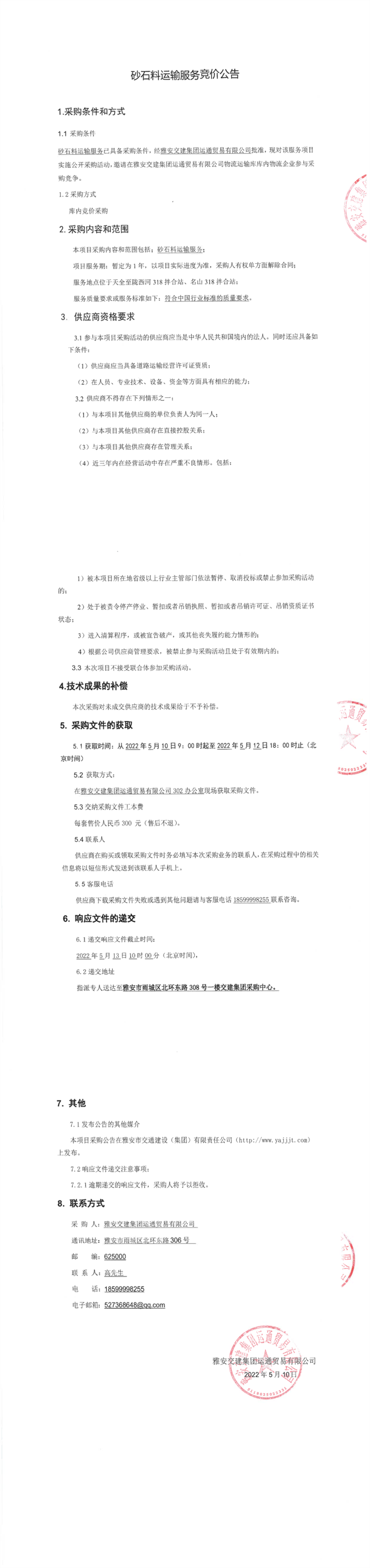 DB视讯 集团运通贸易有限公司砂石料运输服务竞价公告