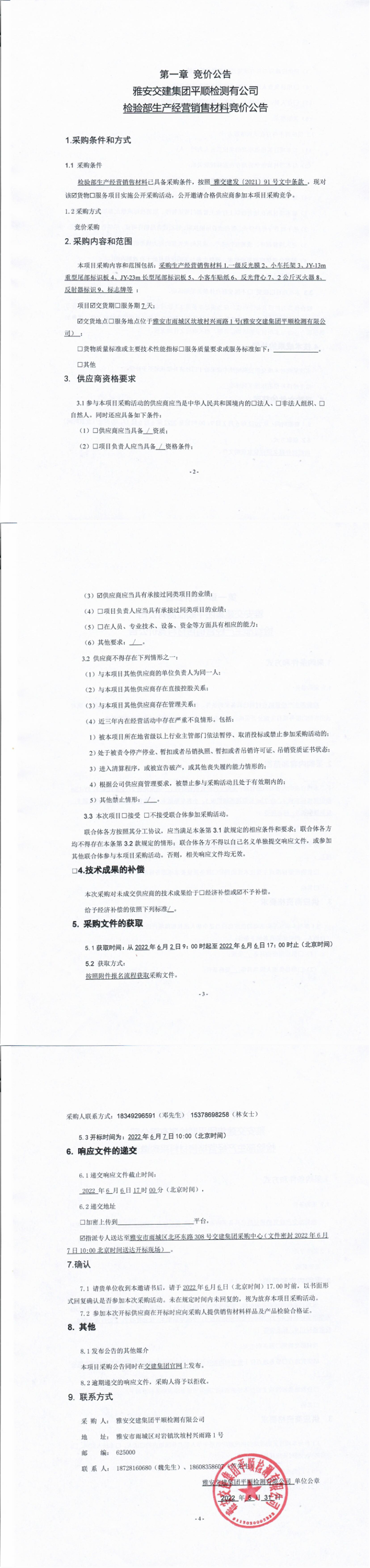 DB视讯 集团平顺检测有限公司检验部生产经营销售材料竞价公告