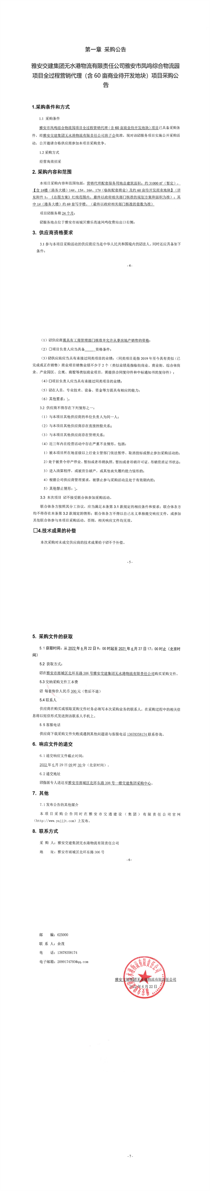 DB视讯 集团无水港物流有限责任公司雅安市凤鸣综合物流园项目全过程营销代理(含60亩商业待开发地块)项目采购公告