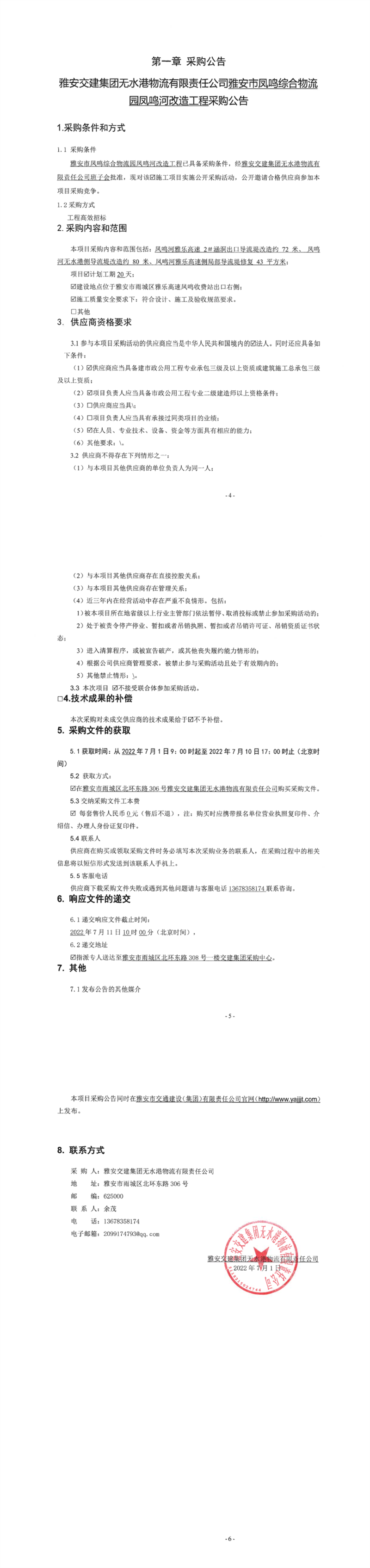 DB视讯 集团无水港物流有限责任公司雅安市凤鸣综合物流园凤鸣河改造工程采购公告