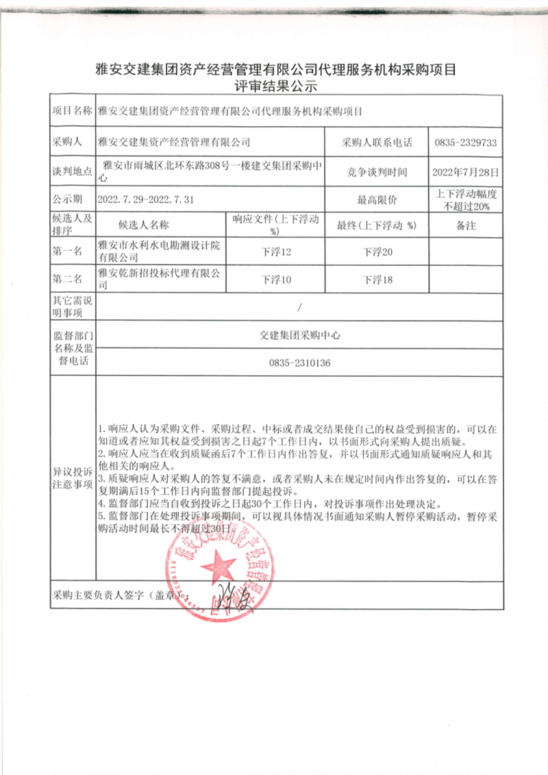 DB视讯 集团资产经营管理有限公司代理服务组织采购项目评审结果公示