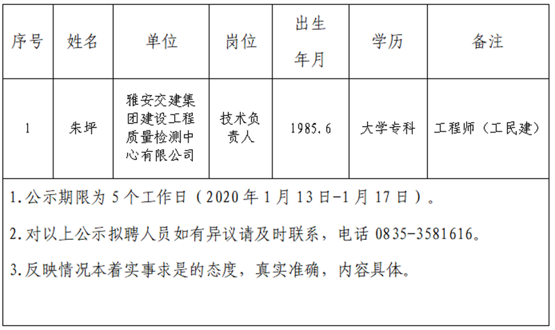 DB视讯 集团子公司拟聘用人员公示 (工程检测中心)