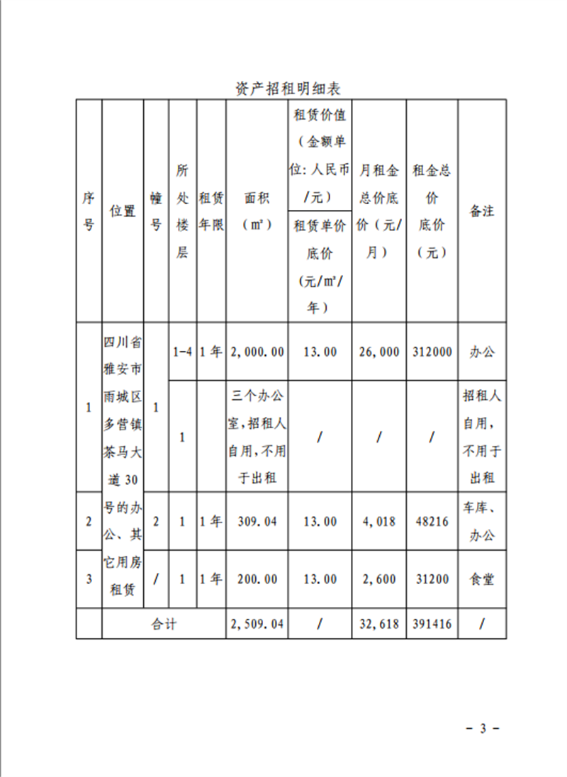 关于雅安市雨城区多营镇茶马大道30号办公楼及其他用房招租的公告
