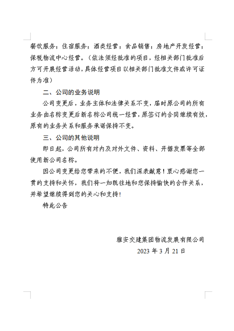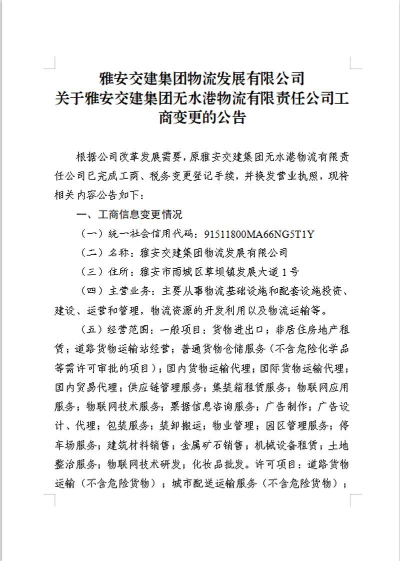 DB视讯 集团物流开展有限公司关于DB视讯 集团无水港物流有限责任公司工商变更的公告