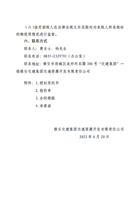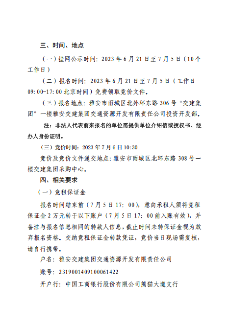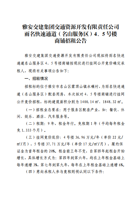 DB视讯 集团交通资源开发有限责任公司雨名快速通道(名山服务区)4、5号楼招租公告