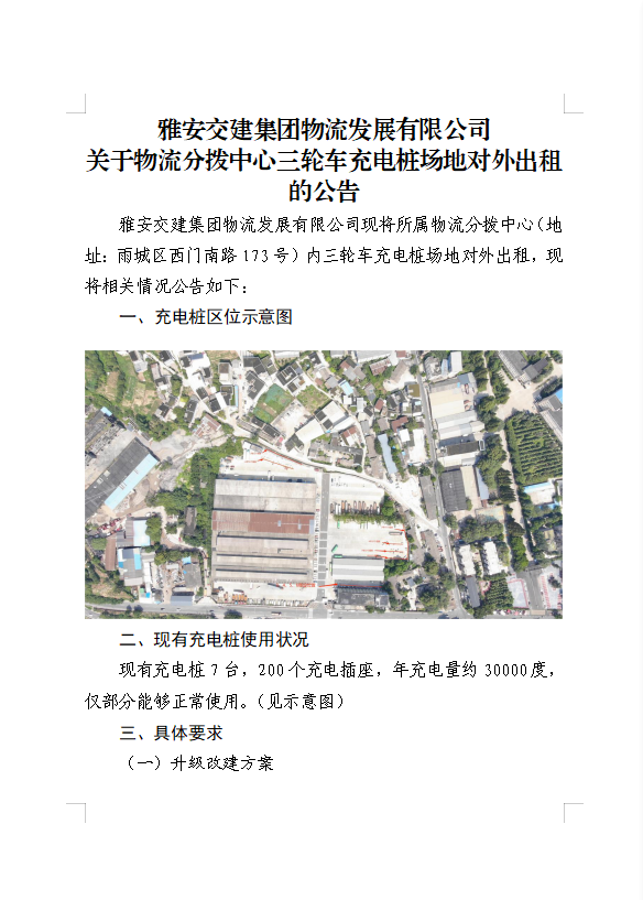DB视讯 集团物流开展有限公司关于物流分拨中心三轮车充电桩场地对外出租的公告