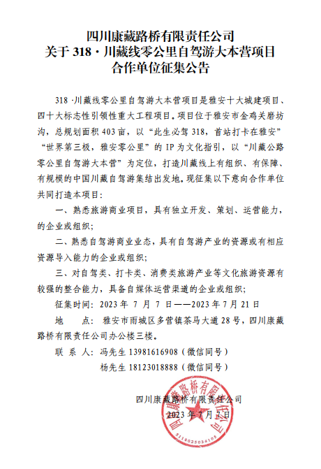 四川康藏路桥有限责任公司关于318.自驾大本营合作单位征集公告