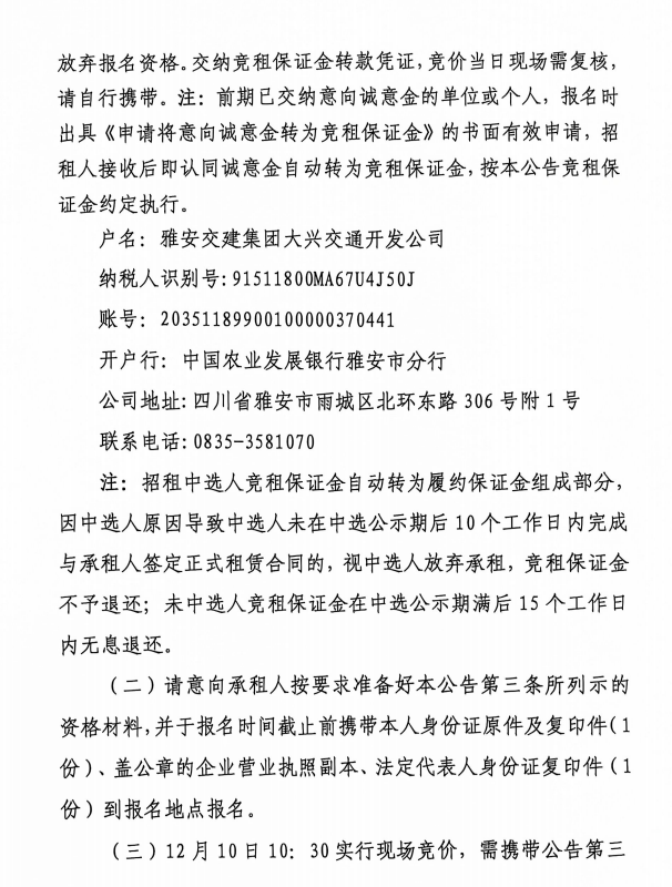 雅安市城市综合停车场姚桥综合停车场及配套用房招租公告