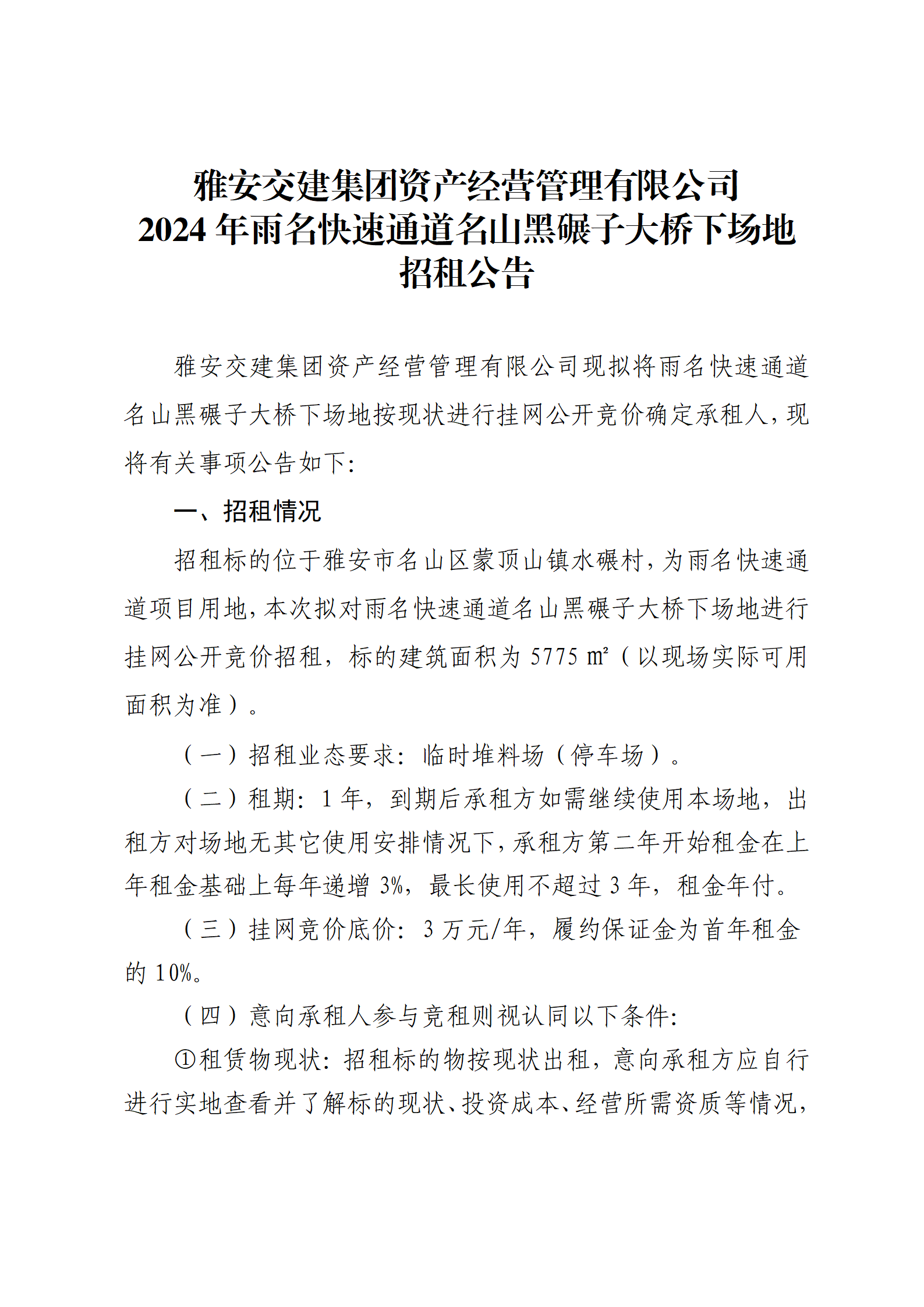 DB视讯 集团资产经营管理有限公司2024年雨名快速通道名山黑碾子大桥下场地招租公告