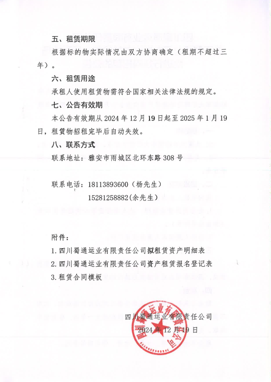 四川蜀通运业邮箱责任公司关于蜀通公司九襄汽车站候车大厅两处场地进行挂网招租的公告附件