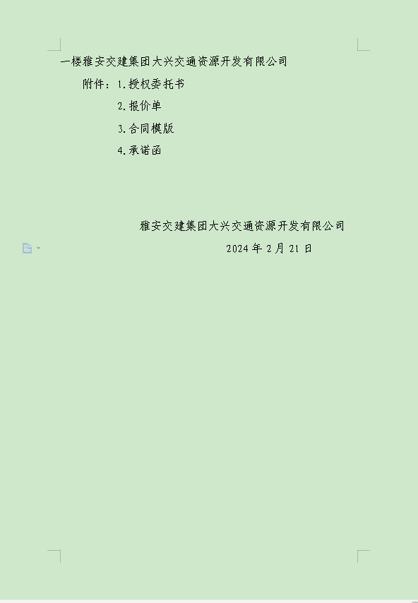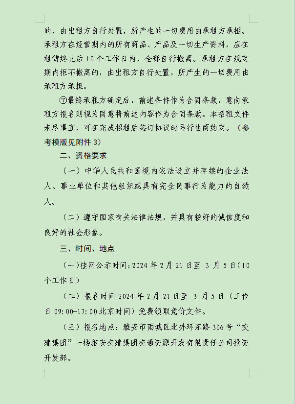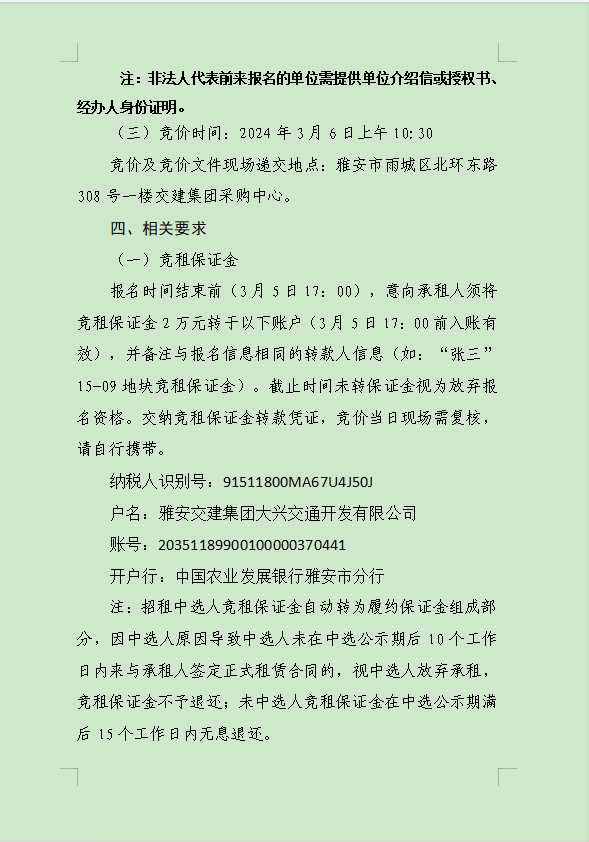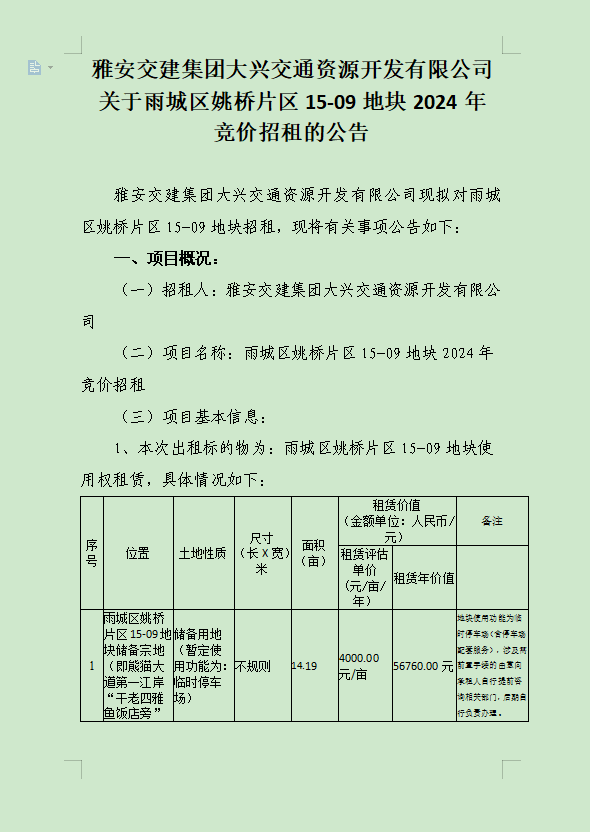 DB视讯 集团大兴交通资源开发有限公司关于雨城区姚桥片区15-09地块2024年竞价招租的公告