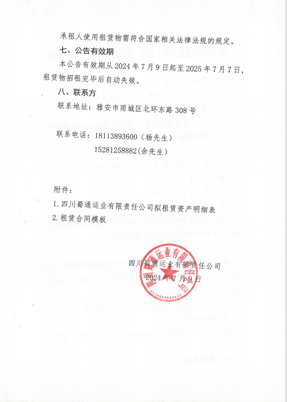 四川蜀通运业有限责任公司关于蜀通公司1间门面进行挂网的公告附件