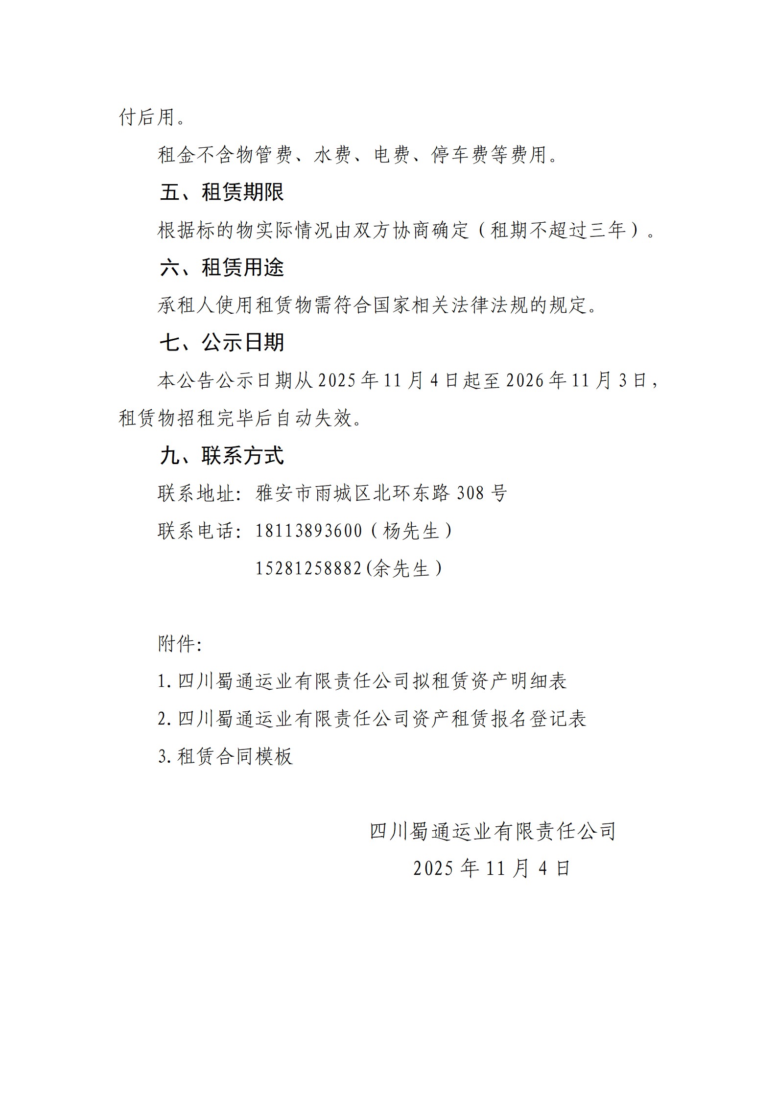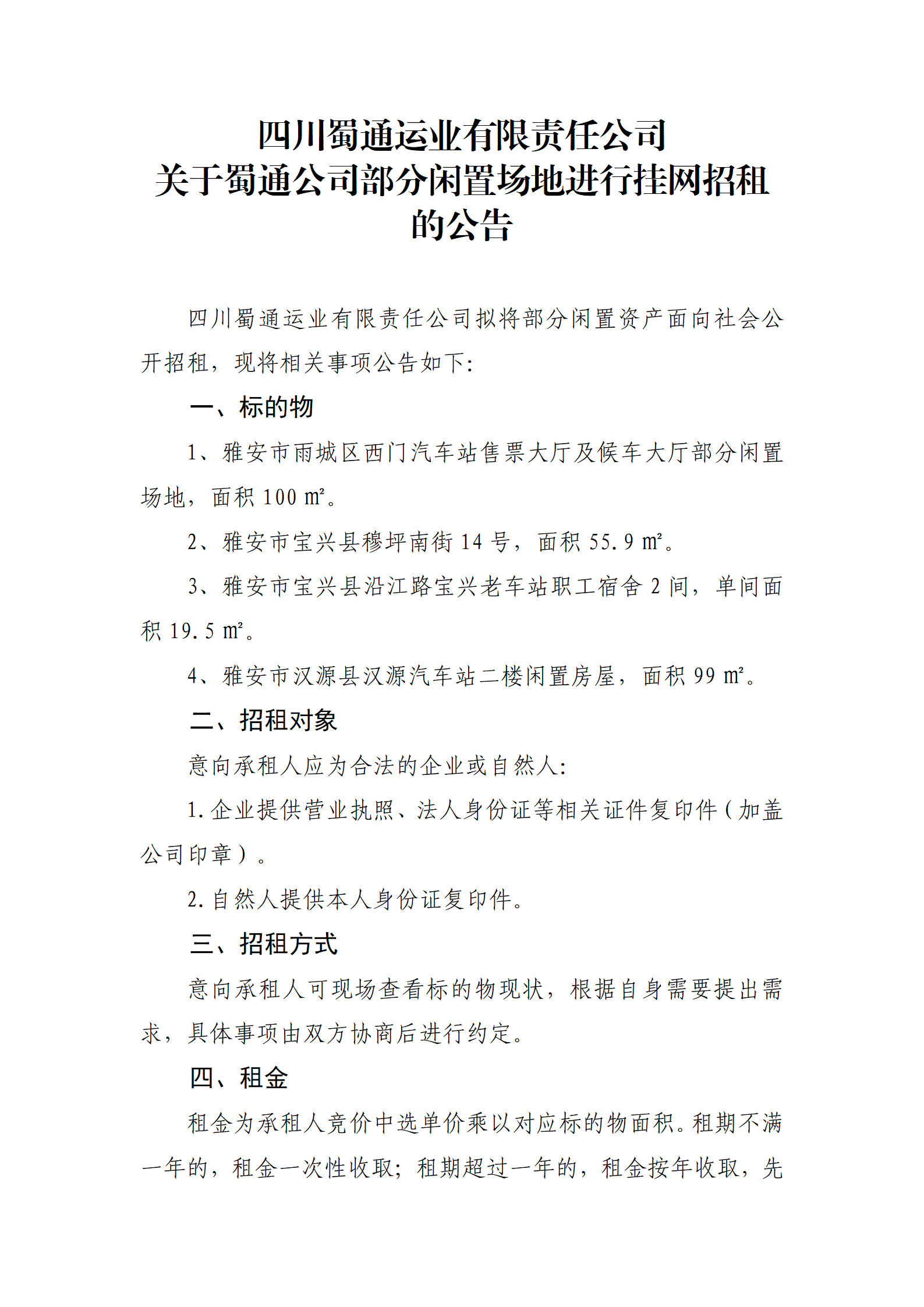 四川蜀通运业有限责任公司 关于蜀通公司部分闲置场地进行挂网招租的公告