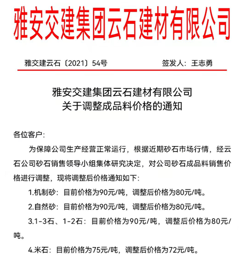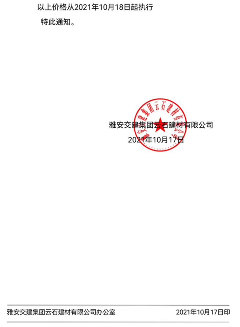 DB视讯 集团云石公司关于调整成品料销售价格的通知(2021.10.17)