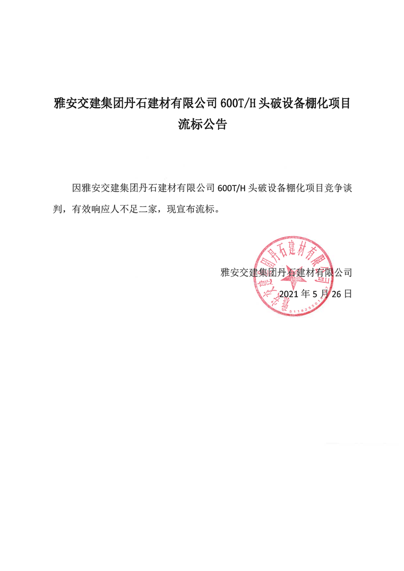 DB视讯 集团丹石建材有限公司600T/H头破设备棚化项目流标公告