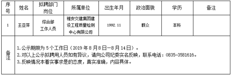 DB视讯 集团子公司拟聘用人员公示(工程质量检测中心)