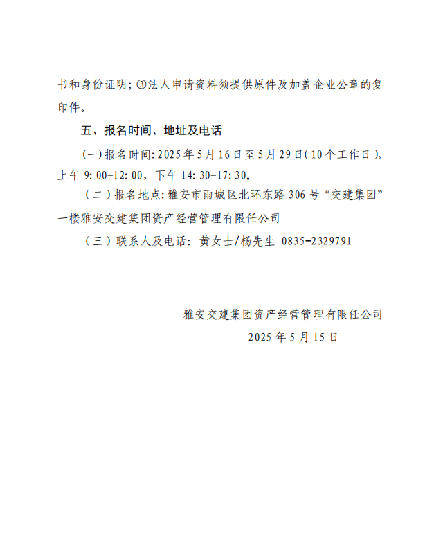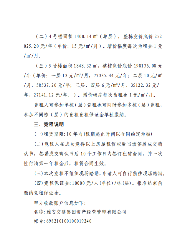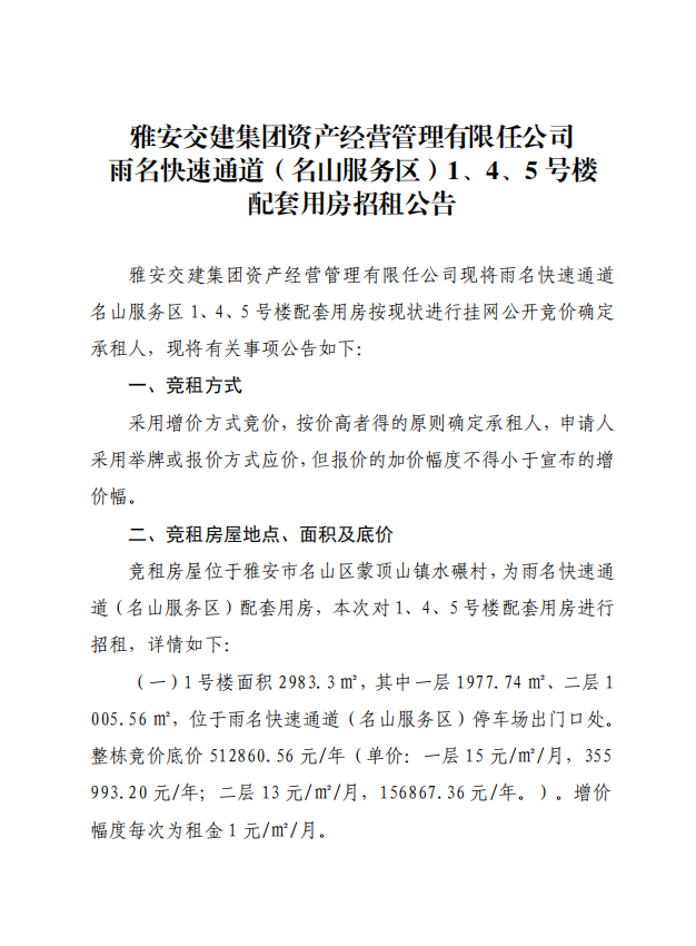 DB视讯 集团资产经营管理有限任公司 雨名快速通道(名山服务区)1、4、5号楼 配套用房招租公告